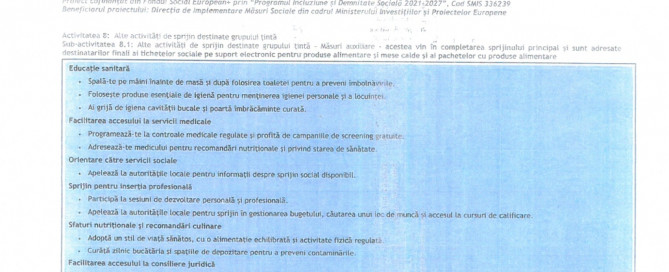 Măsuri auxiliare adresate destinatarilor finali ai tichetelor sociale pentru produse alimentare, mese calde și pachete