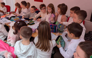 La Muzeul Etnografic „ACASĂ”, fetele au descoperit cu bucurie frumusețea meșteșugurilor de altădată. Au învățat să brodeze modele fine și delicate, așa cum făceau odinioară bunicile și străbunicile lor. Cu mâini migăloase și ochi curioși, au colorat cu drag imagini cu Maica Domnului, iar apoi au deprins o îndemânare practică foarte utilă – coaserea nasturilor. Nu a fost doar o simplă activitate, ci o adevărată legătură între generații, cu atât mai valoroasă cu cât în satul Groși se păstrează o bogată tradiție în confecționarea straielor populare. Acolo, firul, acul și pânza nu sunt doar materiale, ci purtători de poveste.