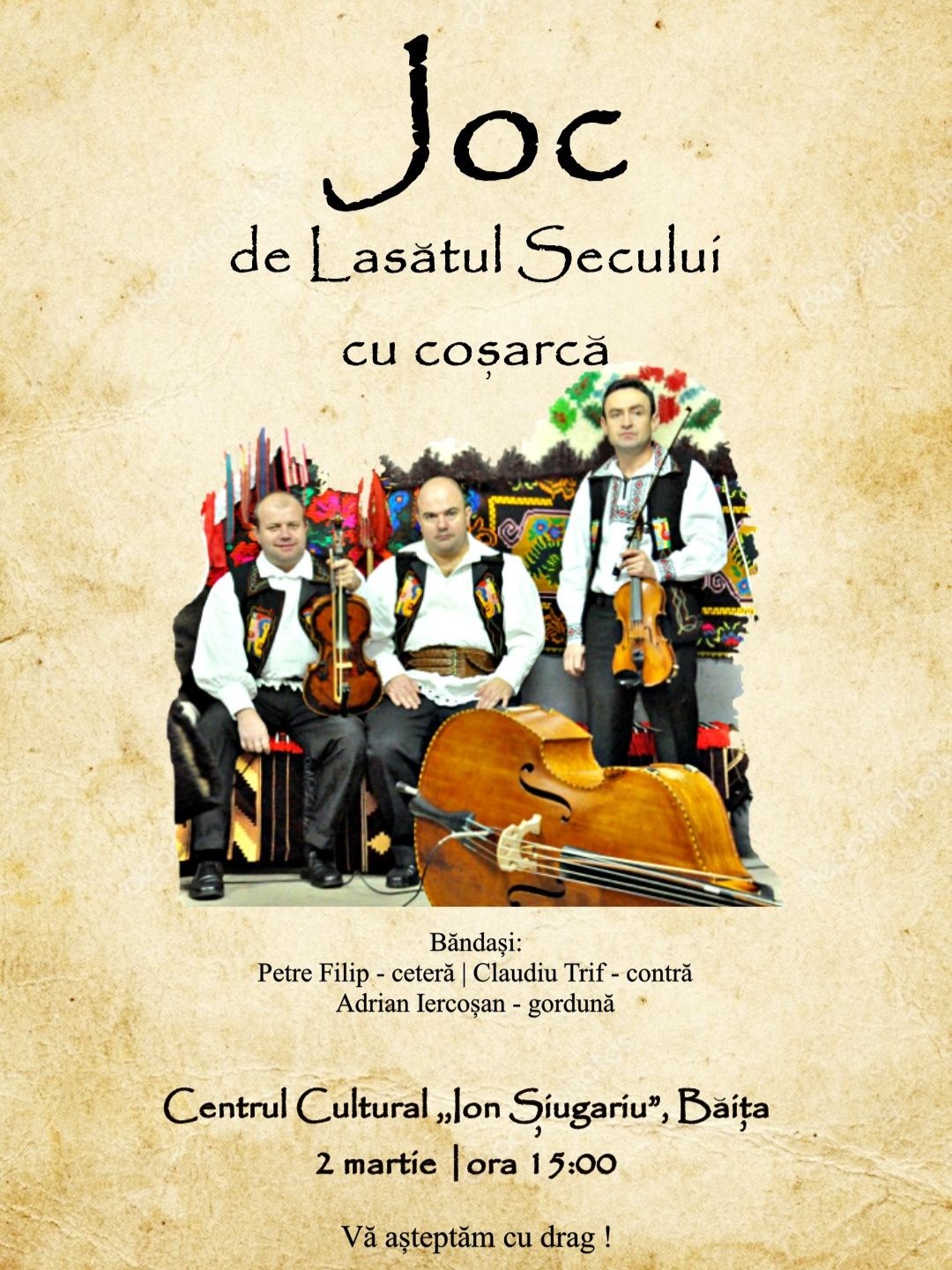 Vă așteptăm să ne bucurăm împreună de un ,,Joc de Lăsatul Secului cu coșarcă” la Băița, așa cum se cuvine !