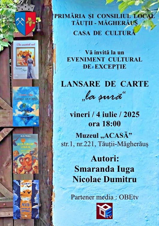 Dna. Smaranda Iuga și dl. Nicolae Dumitru* , două voci valoroase ale literaturii noastre contemporane, își vor lansa cele mai recente volume într-un cadru de suflet – Muzeul ACASĂ, un spațiu dedicat identității, tradiției și dialogului cultural.