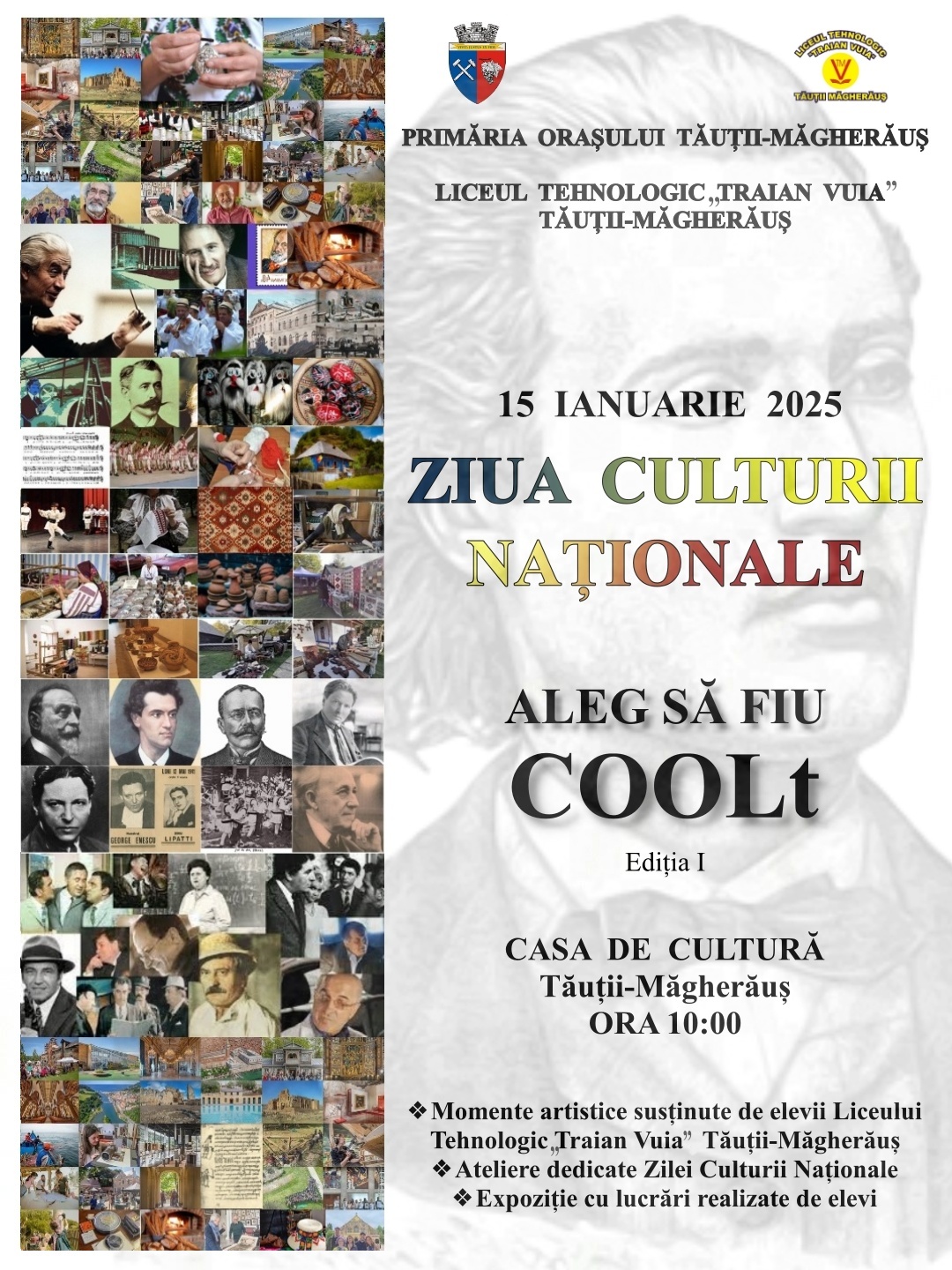 Anul acesta, în parteneriat cu Liceul Tehnologic ,,Traian Vuia”, am avut bucuria să organizăm prima ediție a evenimentului ,,Aleg să fiu COOLt”, prin care am dorit în primul rând să aducem un omagiu marelui poet Mihai Eminescu de la nașterea căruia se împlinesc astăzi 175 ani, dar și să arătăm că moștenirea noastră culturală este vie, atractivă și modernă. Într-o lume în care fiecare clipă este o provocare, iar tentațiile sunt la tot pasul, cultura trebuie să fie un refugiu și un ghid. Tinerii vor aprecia mult mai mult cultura atunci când o pot experimenta într-un mod care rezonează cu stilul lor de viață actual și prin mijloacele noi de comunicare pe care ei le folosesc.