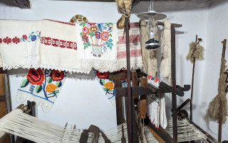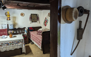 The museum consists of a traditional peasant household dating back to the late 18th century, comprising a house, barn, stable, shed, chicken coop, and summer kitchen (colniță). Visitors are invited to step into an authentic world where the rural past comes back to life, and where they will find joy in discovering beauty, peace, and order. From old agricultural tools—silent witnesses of fieldwork—to household items that once accompanied the daily life of the Romanian peasant, each exhibit tells the story of a simple yet meaningful and dignified existence. The spirit of the ancestors breathes through the wood of the old furniture, through the scent of woven fabrics, and through the quiet sound of footsteps taken with reverence in this world that does not wish to be forgotten.