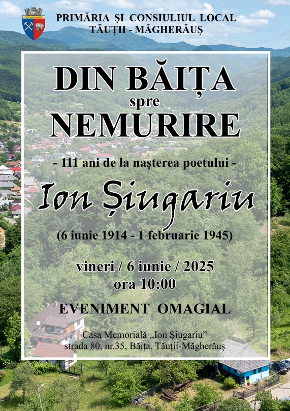 Din Băița spre Nemurire – 111 ani de la nașterea poetului Ion Șiugariu. Astăzi, 6 iunie, omagiem 111 ani de la nașterea poetului Ion Șiugariu, fiu al acestor meleaguri maramureșene, născut în Băița. Spirit elevat, crescut într-o familie modestă, Ion Șiugariu a urmat drumul învățăturii, studiind la Oradea și București apoi și-a dedicat viața atât cuvântului scris, cât și patriei.