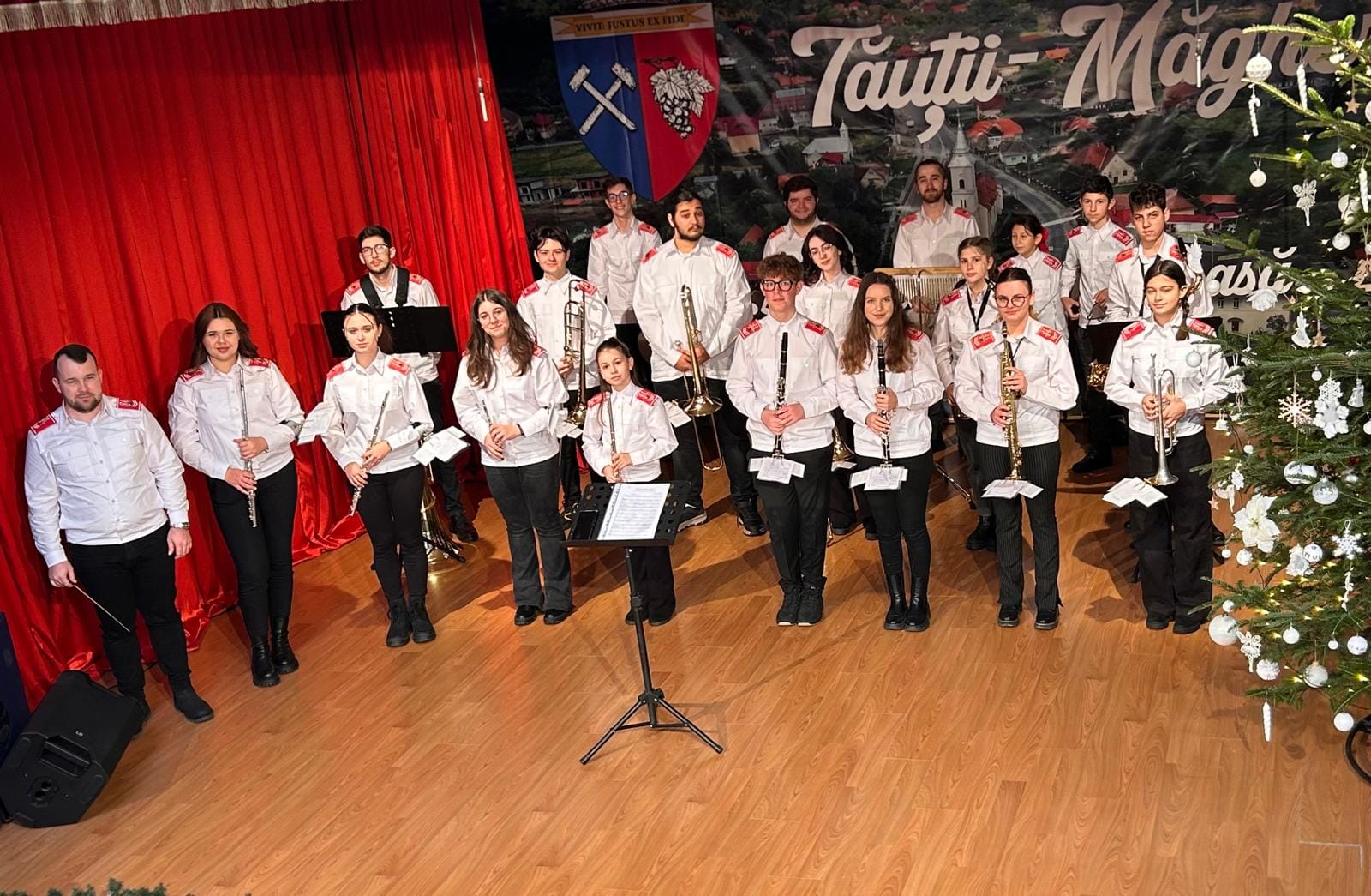 Înființată în martie 2011, Fanfara “Stibina” are în prezent 32 de membri dintre care 24 activi și 8 începători. Pentru instruirea fanfarei sunt angajați cu contract de colaborare 5 profesori de instrumente și un dirijor. Membrii fanfarei sunt copii și tineri din orașul Tăuții-Măgherăuș cu vârste cuprinse între 12 și 20 de ani – elevi ai Liceului Tehnologic „Traian VUIA” și alte licee din municipiul Baia Mare. Ca o consecință a dezvoltării dragostei față de muzică – 8 dintre membrii fanfarei s-au îndreptat spre Colegiul de Arte Baia Mare iar un altul studiază muzica într-un liceu de specialitate din București. Fanfara “Stibina” a orașului Tăuții-Măgherăuș reprezintă comunitatea noastră la toate activitățile desfășurate în cadrul orașului. “Stibina” a participat la Festivalul fanfarelor școlare de la Târgu Mureș în 2015 și 2016 unde a obținut Premiul special al juriului și un premiu 2. Are parteneriate cu fanfare din Franța (Millau) și Bulgaria (Oreahova). Fanfara a mai participat la activități specifice împreună cu Fanfarele unite ale orașului Satu Mare cu care au de asemenea un parteneriat și alături de care au participat la două tabere de instruire intensivă – în 2014 la Satu Mare și în 2015 la Baia Mare. În viitor ne-am propus să încheiem și alte parteneriate cu fanfare din țară și nu doar – cum și să punem în valoare cât mai eficient instruirea de care ne bucurăm.